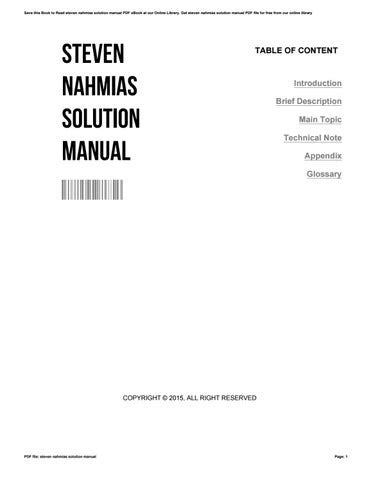 [UniqueID] - Read STEVEN NAHMIAS SOLUTION MANUAL PDF
